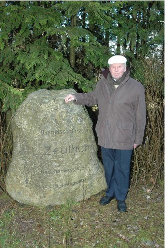 ”Den kommer ude fra Fallesgårde, og det var dyrt at få den fragtet til stedet og sat op. Det kostede 3.000 kroner, og pengene kom ind ved at folk fra et større område heromkring hver gav 50 øre. Det gjorde man i taknemmelighed over den indsats som overretssagfører L. Zeuthen havde ydet for området her, hvor han blandt andet var med til at skaffe kapital til kartoffelmelfabrikken og at hjælpe hedebønderne”, fortæller Georg Bitsch, der erindrer, hvordan hans egen bedstefar, Johan C.H.R. Bitsch, havde haft en svær tid, da han slog sig ned som bonde på uopdyrkede arealer ved Vestermarksvej.