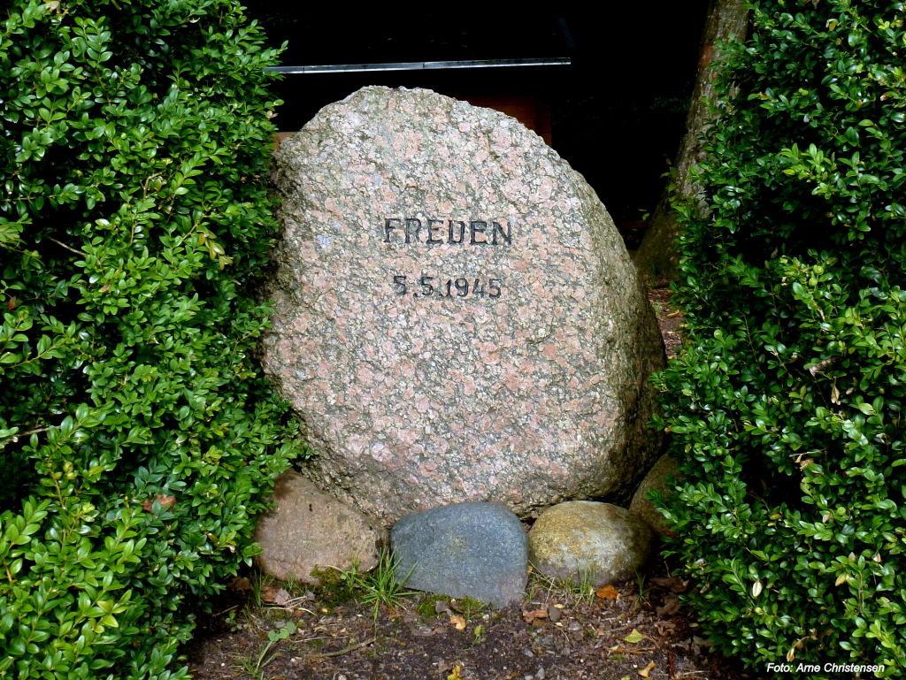 Den ene bærer kort og godt inskriptionen ”Freden 5.5. 1945 ” og henviser helt klart til afslutningen på anden verdenskrig.