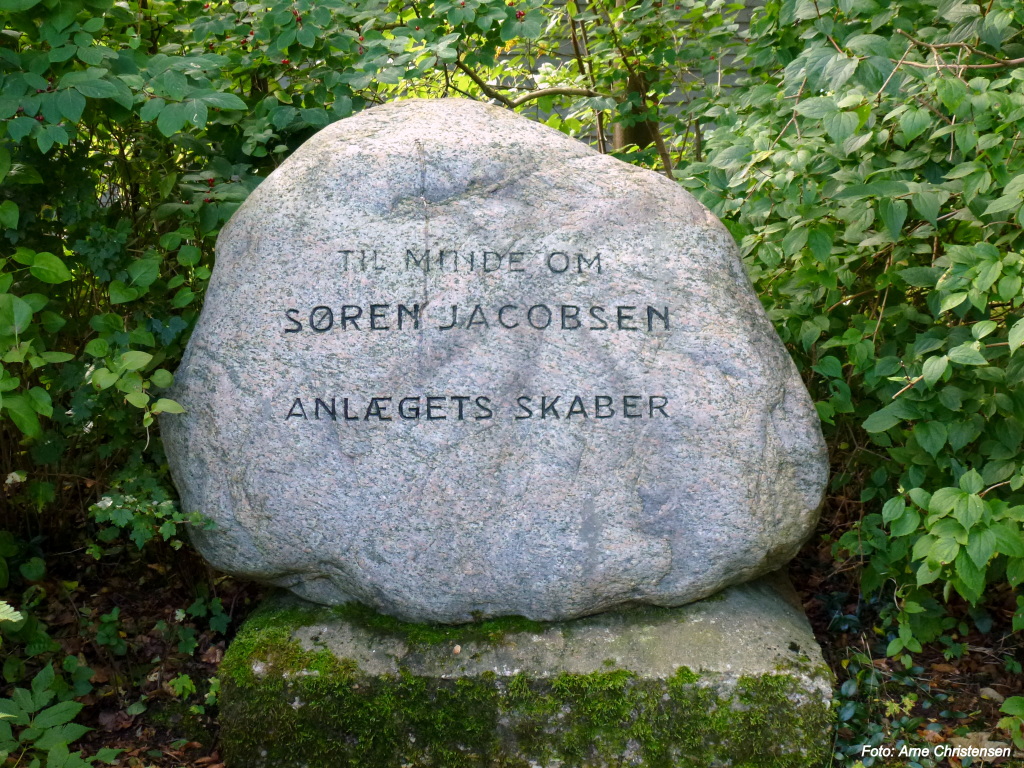Den anden sten er formentlig noget ældre, og bærer inskriptionen ”Til minde om Søren Jacobsen, anlægets skaber ”.